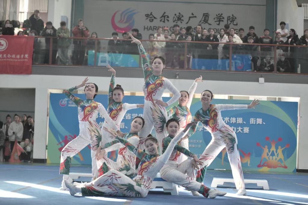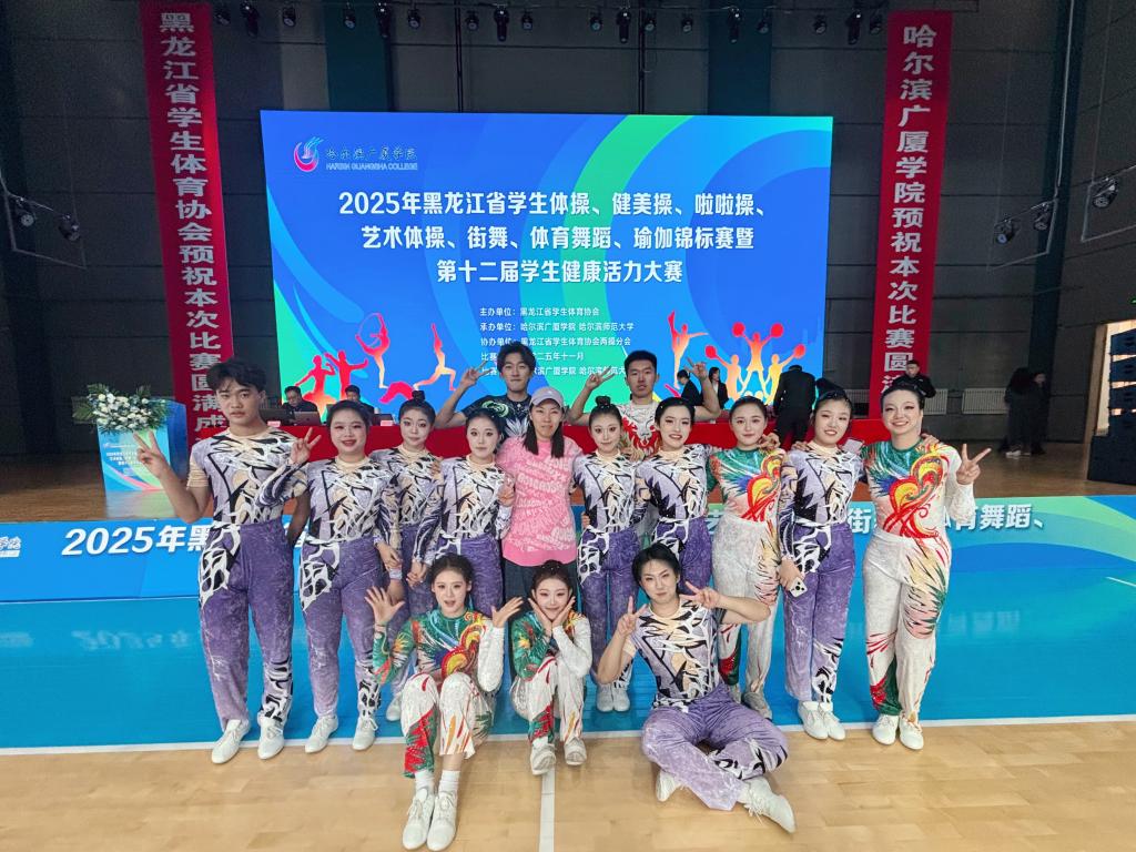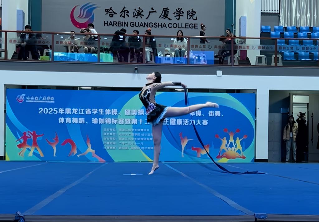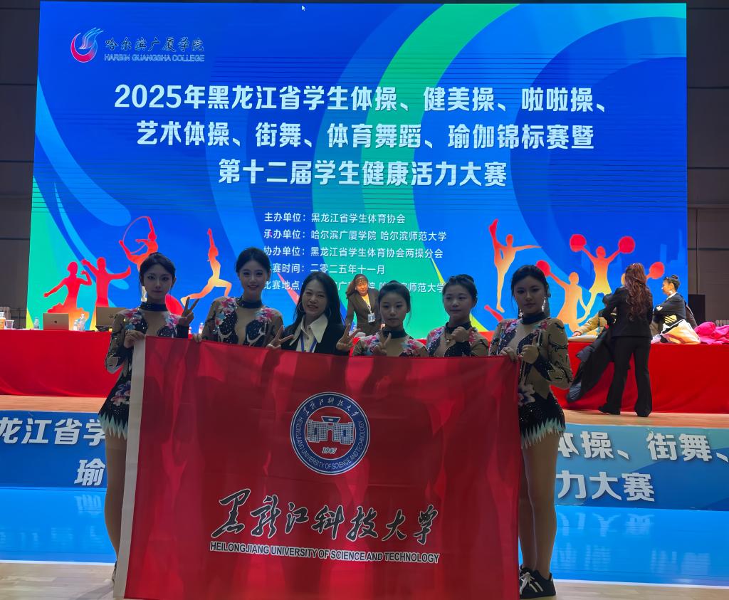 由黑龙江省学生体育协会主办的“2025年黑龙江省学生体操、健美操、啦啦操、艺术体操、街舞、体育舞蹈、瑜伽锦标赛暨第十二届学生健康活力大赛”于11月7日—9日在哈尔滨广厦学院开赛,来自黑龙江科技大学、哈尔滨工业大学、哈尔滨工程大学等35所高校参赛,我校共选派出4名教练员和51名运动员参赛。